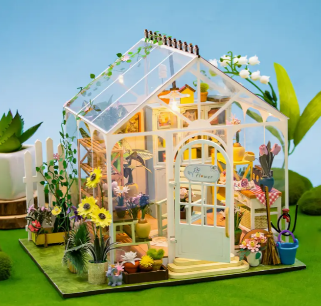 Sun Flower 3D jigsaw Assembly Model DIY Miniature House Wooden dollhouse kit, furnished small house home bedroom decor, perfect for Halloween and Christmas gifts - no batteries/glue/music box required