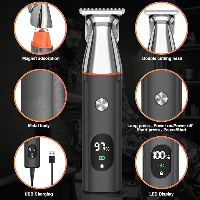Telfun Beard Trimmer for Men, Electric Razor IPX7 Waterproof Beard Trimming Kit with Mustache Nose Ear Body Facial, Shaving Kit for Cordless Hair Trimmer, Hair Clippers, Gifts for Men