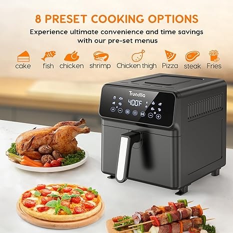 Trundlia 8-in-1 Air fryer 6.3-Quart Metal Smart Combo Oven 1500W Air Fryer oven Oilless Electric Airfryer with LCD Touch Screen Wide 175℉-400℉ Temp Range,Nonstick Basket,8 Quick Presets,ETL Certified