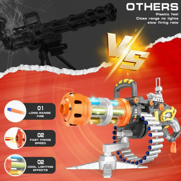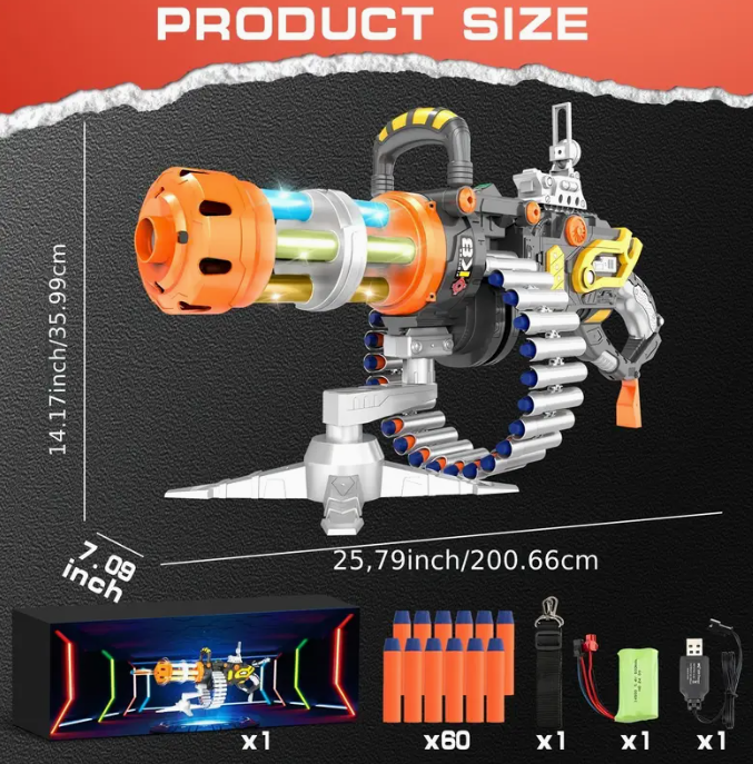 Ultimate Foam Dart Gun Toy gun with light and sound - automatic machine gun design, bipod, 60-round drum magazine, suitable for children 8-12 years old and adults - perfect birthday or Christmas gift