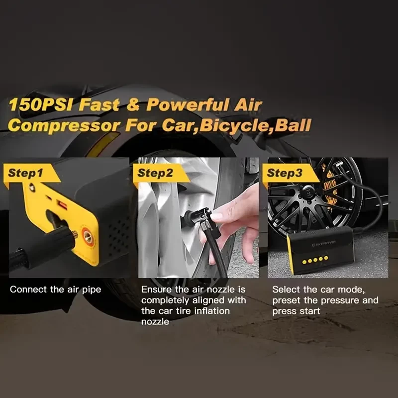 Unlock Your Vehicle's Potential With A Portable Jump Starter & Air Compressor - 1000A Peak, 150PSI Tire Inflator, QC3.0 & Battery Charger!