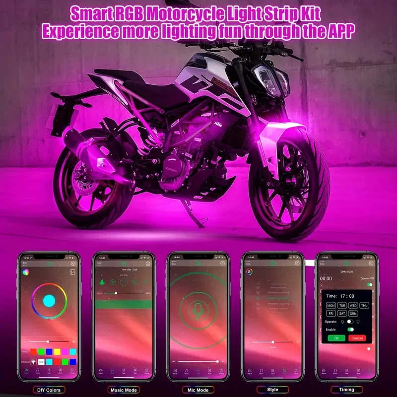 Upgrade Your Motorcycle with a 6-Piece RGB LED Light Kit - Multi-Color, Red Brake Light & Waterproof Silicone Strip!