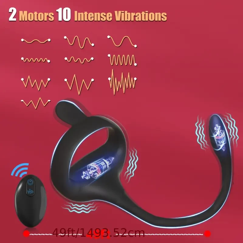 USB Charging Black silicone vibrating Penis Band Remote Control - 9 vibration modes, G-spot stimulator for couples, comfortable fit and discreet packaging