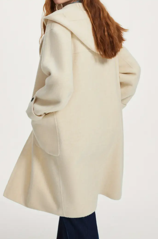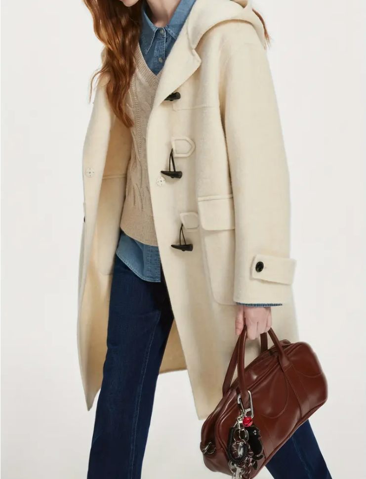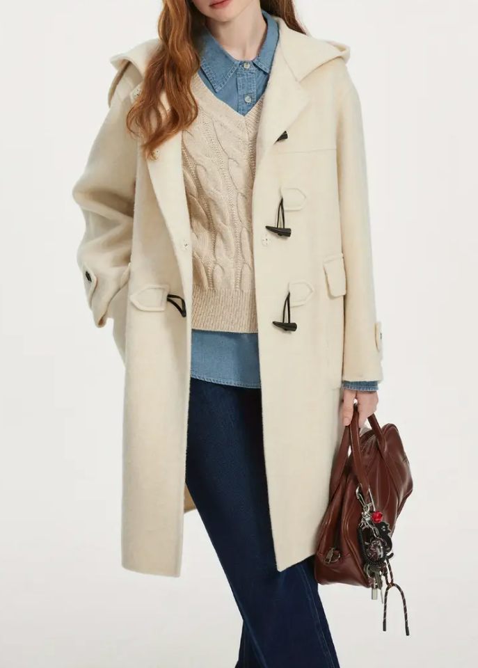 Van Slann College wind hooded wool coat for women Autumn Winter 2024 new horn buckle wool coat 14226