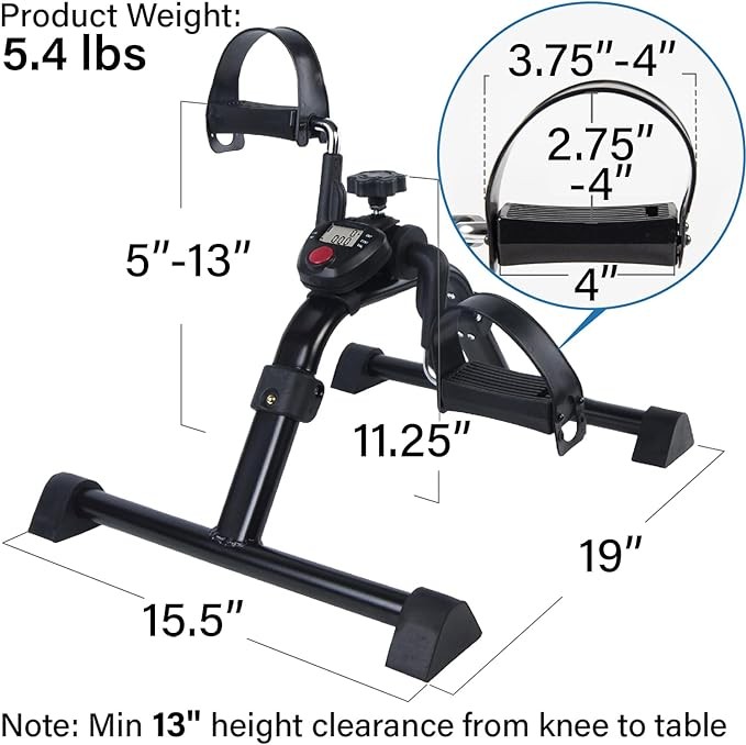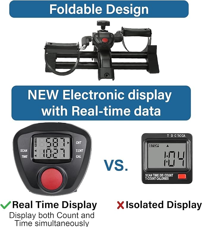 Vaunn Medical Under Desk Bike Pedal Exerciser with Electronic Display for Legs and Arms Workout (Fully Assembled Folding Exercise Pedaler, no Tools Required) , Dark