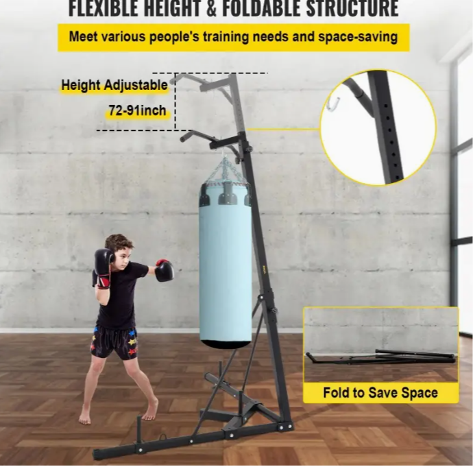 VEVOR 2 in 1 Heavy duty sandbag holder, height adjustable, folding boxing sandbag holder, steel sandbag holder, independent support, weight bearing up to 132 pounds, suitable for home and gym workouts