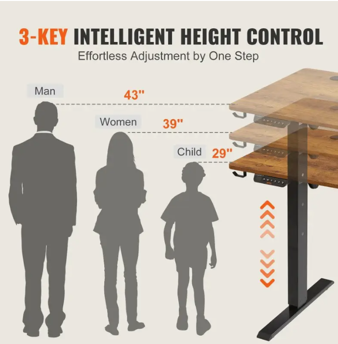 VEVOR Height Adjustable Table 47.2 x 23.6 inches 3-key mode Electric Standing table Complete table Solid bimetal frame for maximum load 180 LBS Computer sitting table for home and office