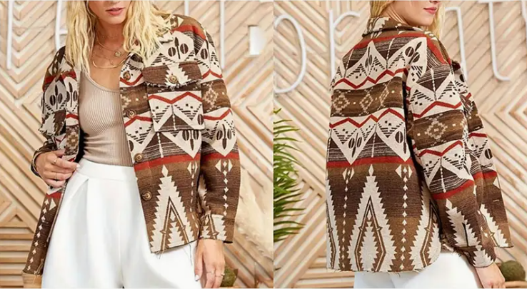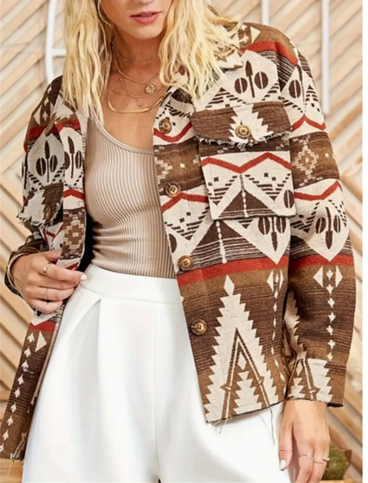 Vintage-inspired women's wool coat - button designs, long sleeves, lapels, geometric patterns | perfect for fall and winter