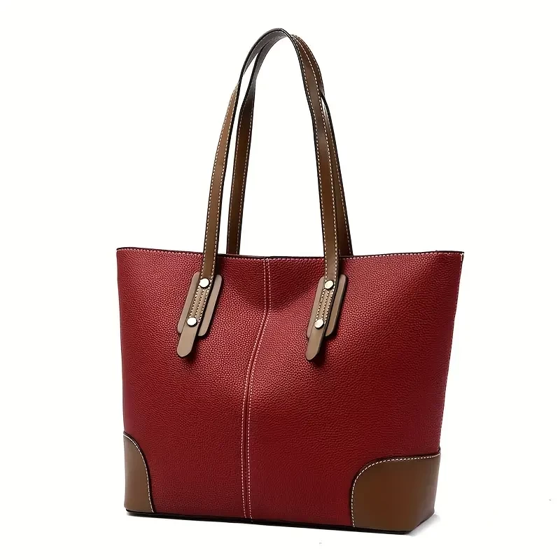 Vintage Large Capacity Tote Bag, Retro PU Shoulder Bag, Women's Fashion Handbag For Commute