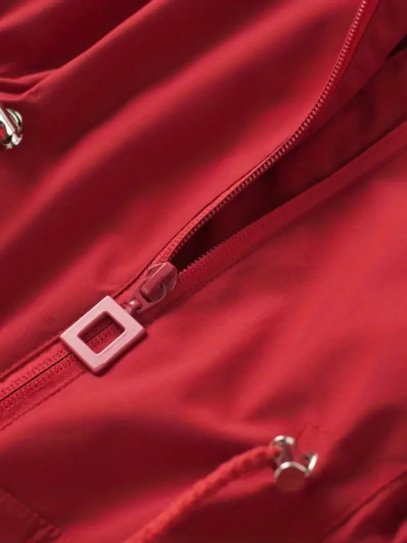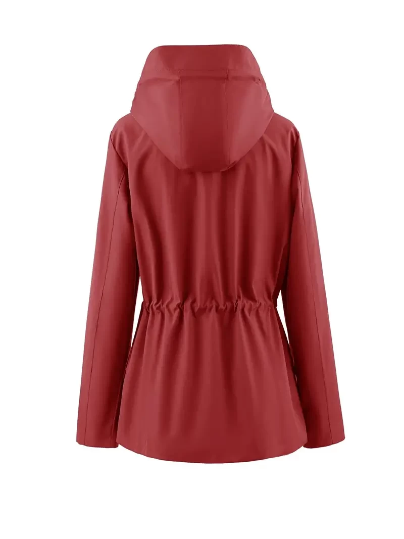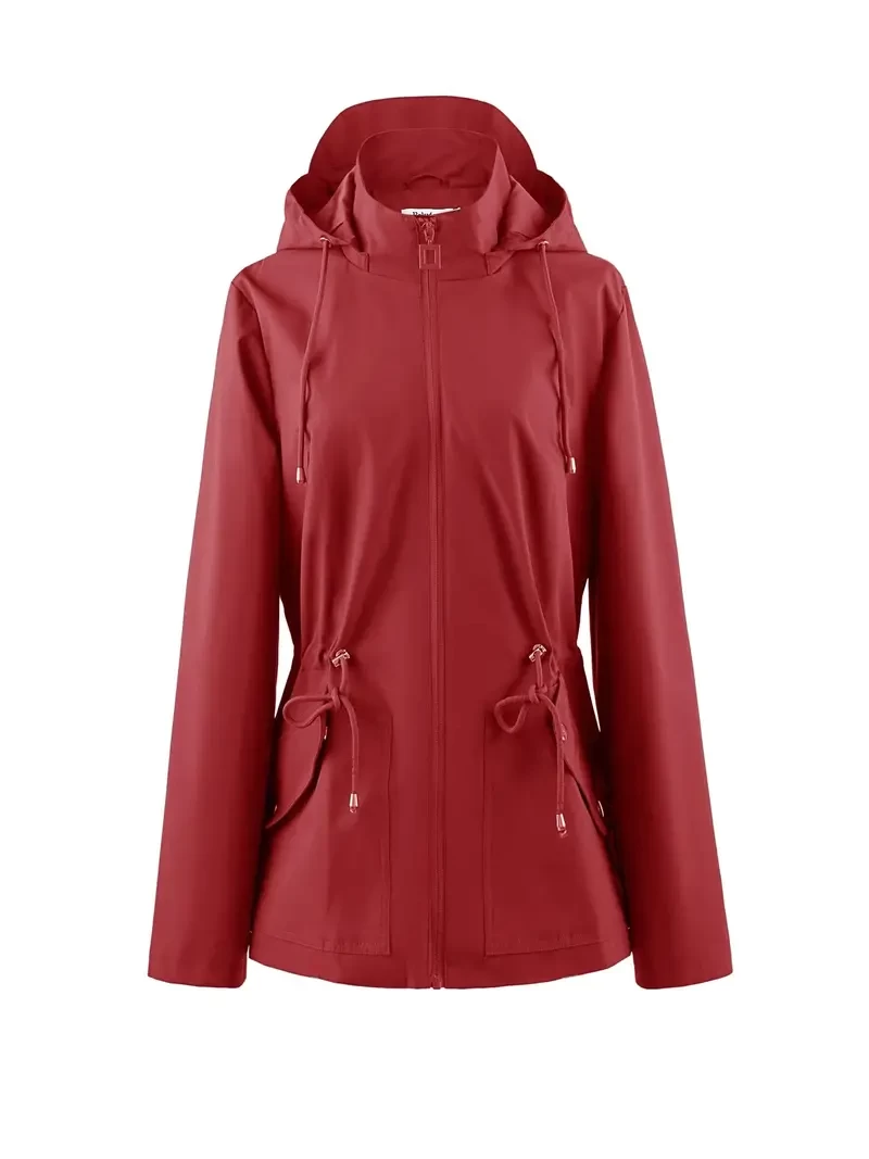 Waterproof Windbreaker Raincoat, Breathable Outdoor Hooded Jacket For Hiking, Camping, Cycling, Running, Long Sleeve Zip Up Drawstring Hood Jacket, Women's Clothing