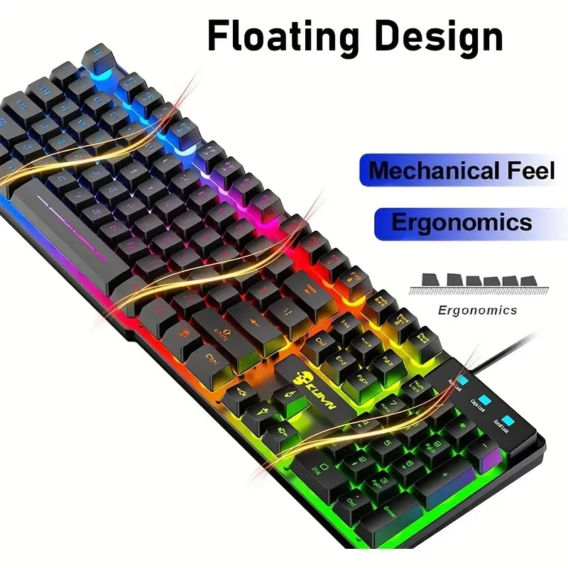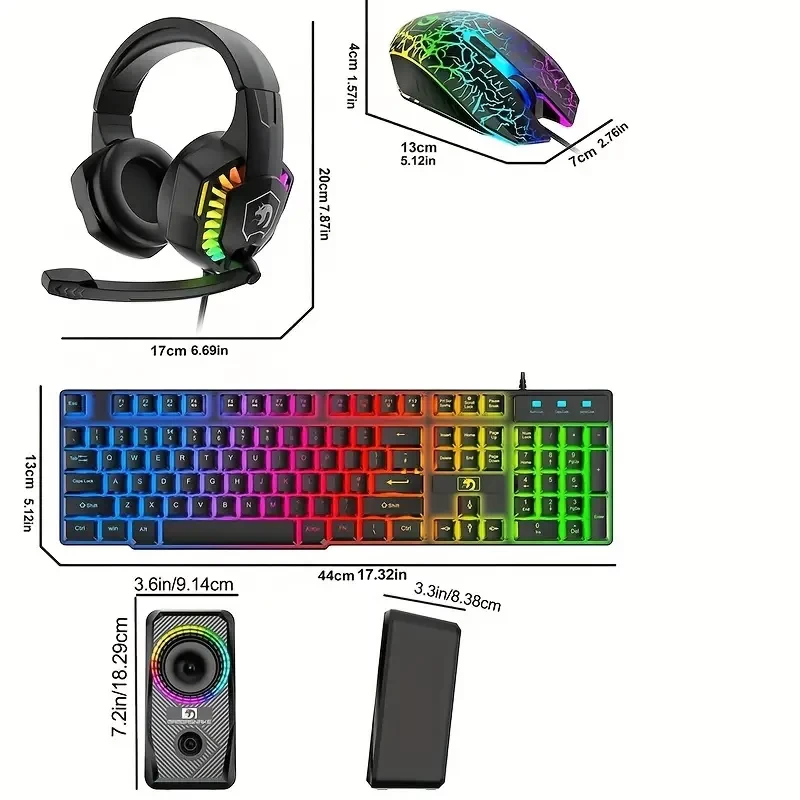 Wired Gaming Keyboard Mouse Headphone and Speaker Combo with Multi RGB Backlight Ergonomic 104 Key Adjustable Mic 2400DPI Mice Large Mousepad Waterproof for PC Mac Gamer Office Typist