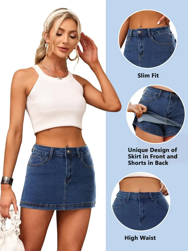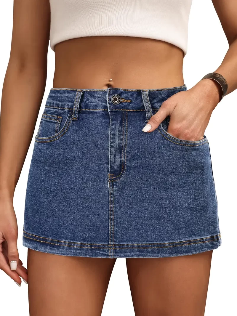 Women's Jeans High-waisted mini denim skirt Casual stretch jeans for women with pockets