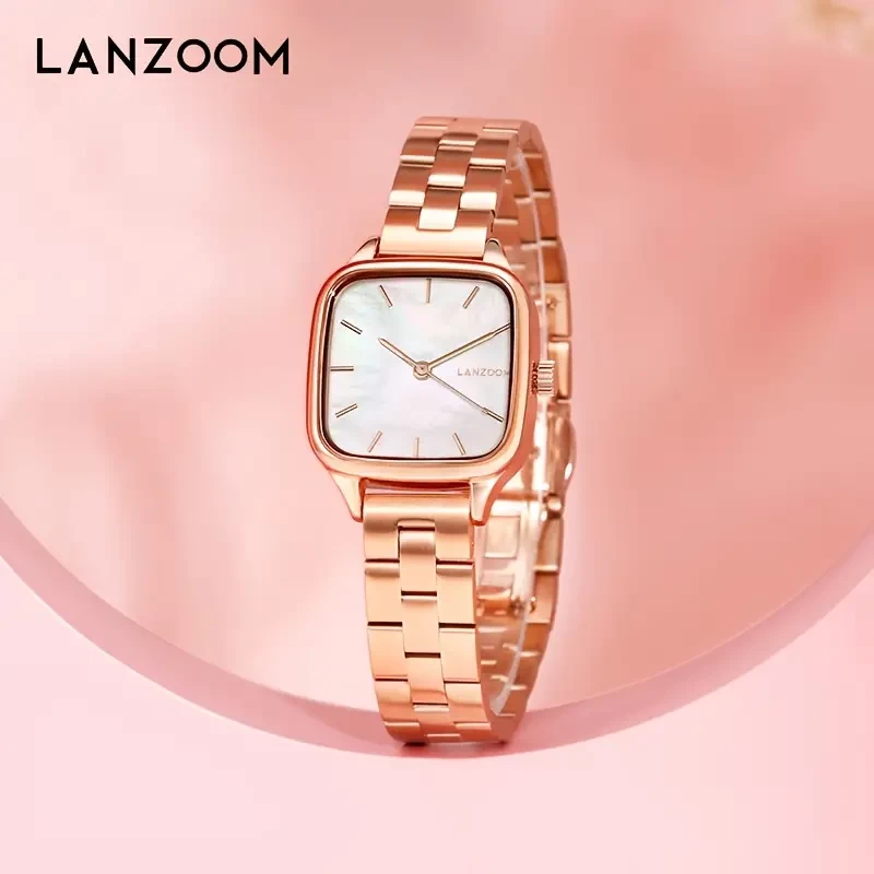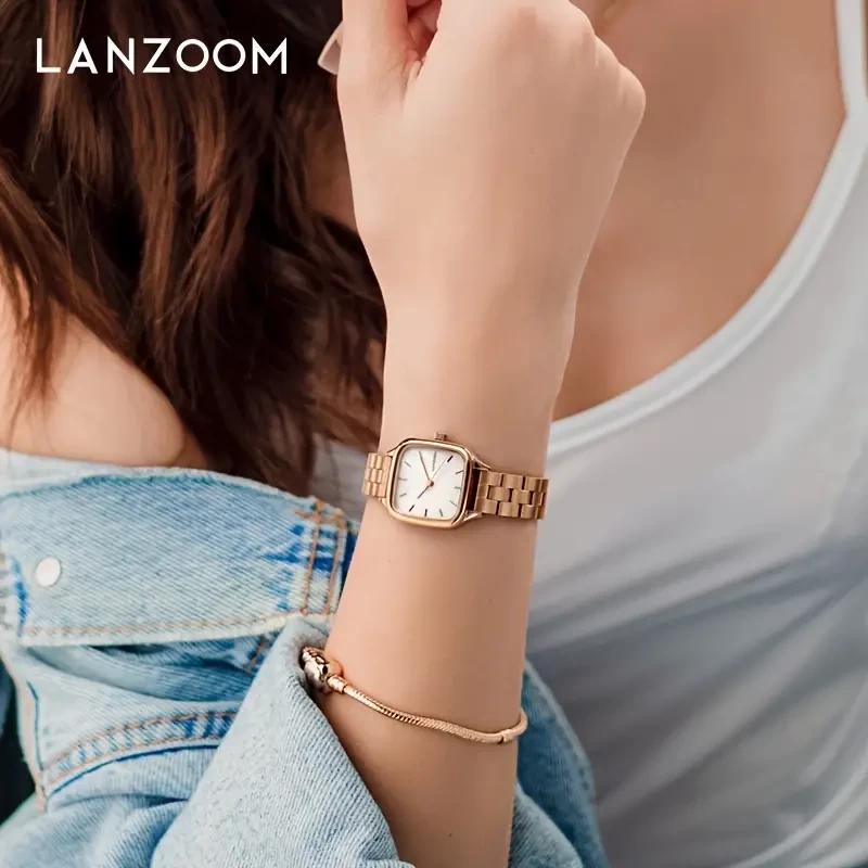 Women's Watch Iridescent Fashion Quartz Watch Elegant Square Pointer Analog Steel Band WR Wrist Watch