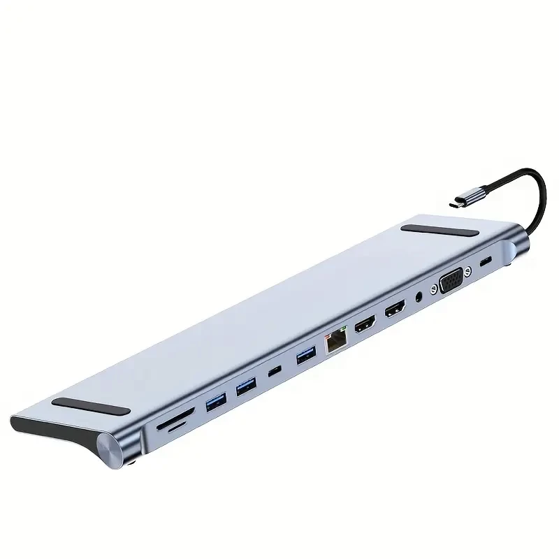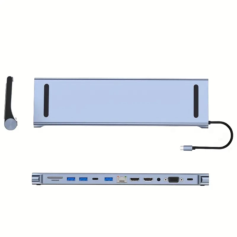 YINICE AUG USB C Docking Station, 12 In 1 Triple Display USB C Hub With Expansion Port USB3.0*1/USB2.0*3/HDMI*2/VGA*1/ 100 Mbit/s NIC *1/USB-C PD Charging *1/TF *1 SD *1/ Audio 3.5mm For MacBook & Win