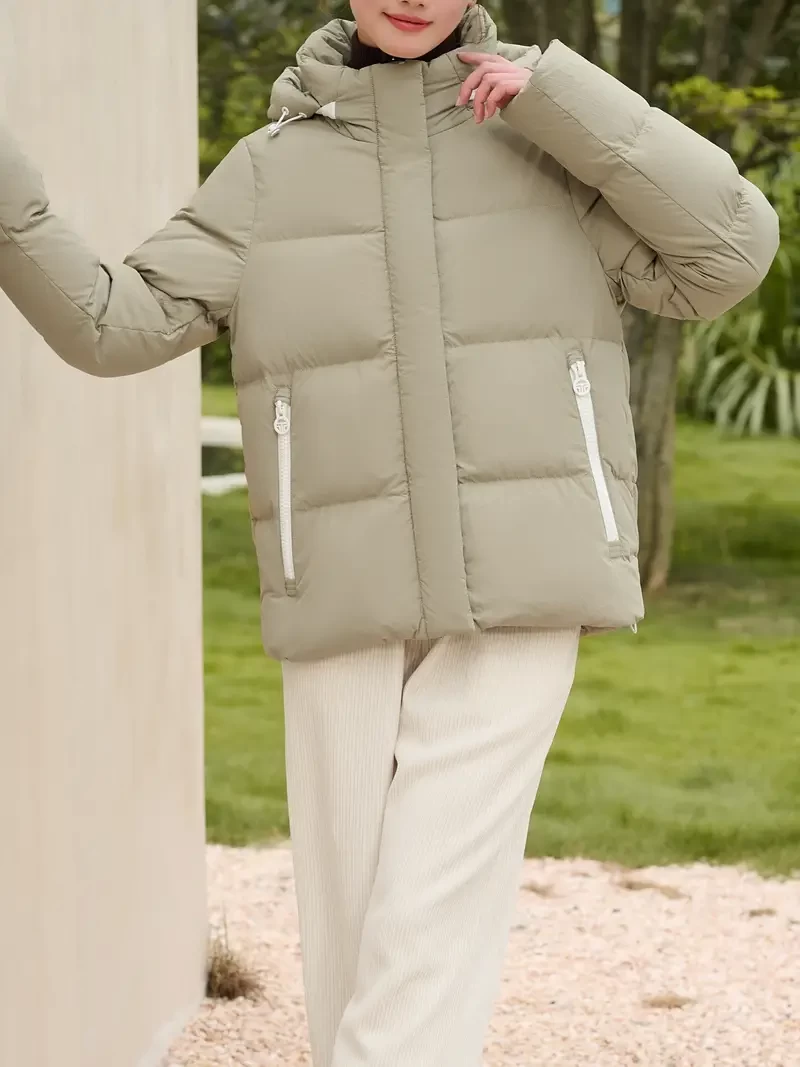 Zip Up Hooded Solid Down Coat, Casual Long Sleeve Winter Warm Outerwear, Women's Clothing
